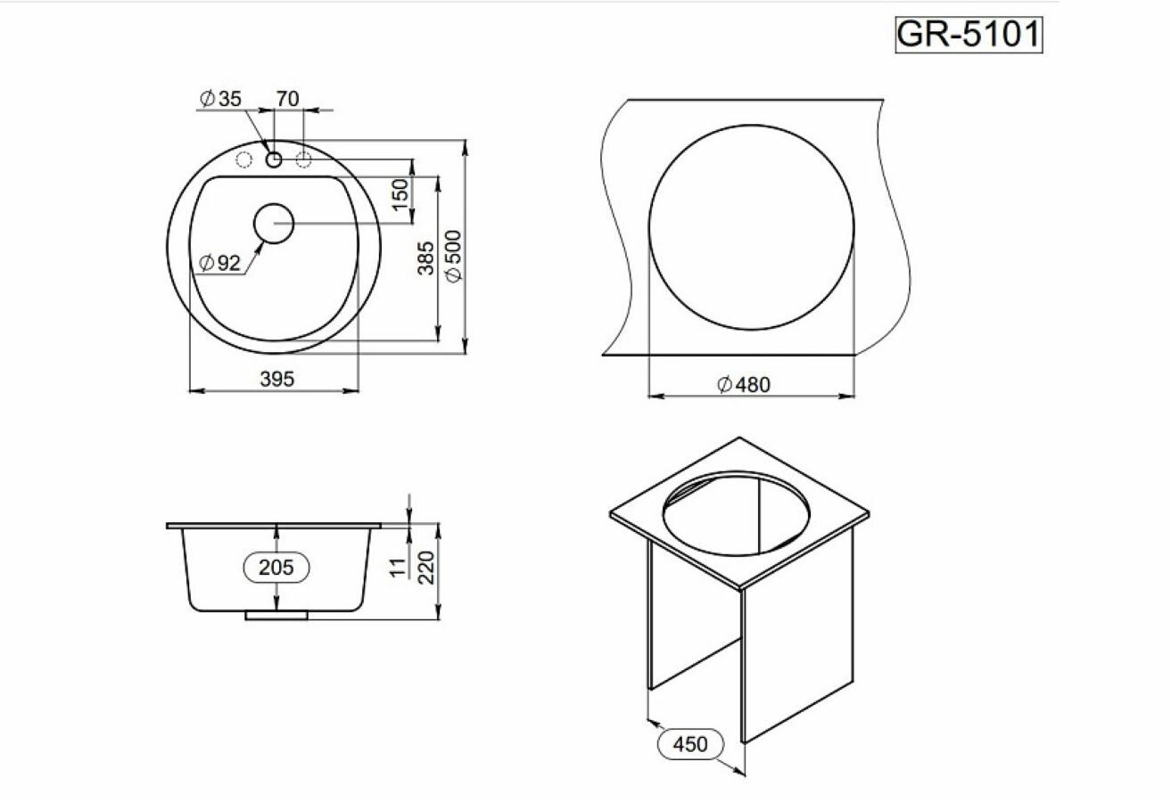Мойка кухонная кварцевая Granula GR-5101 D 500 черный.