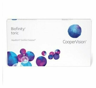 "Астигматические линзы CooperVision Biofinity toric (3 линзы) Ось 120, Оптическая сила цилиндра -0.75 +1.00 R 8.7, ежемесячные, прозрачные"