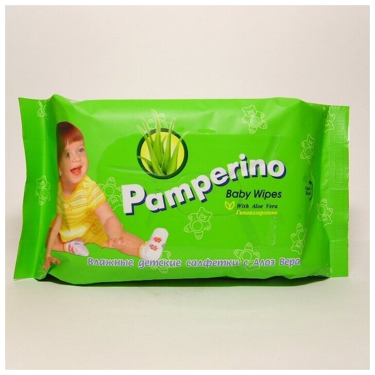 Влажные салфетки Pamperino Детские с экстрактом алоэ вера, пластиковая крышка, 80 шт., 1 уп.