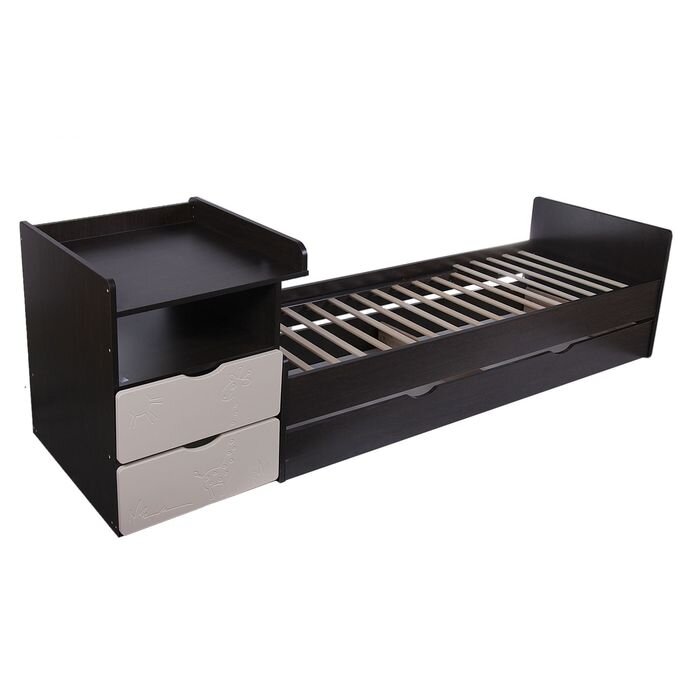 Кровать трансформер 3 ящика, маятник поперечный фасад-жираф, венге-белый Арт. 550038-1