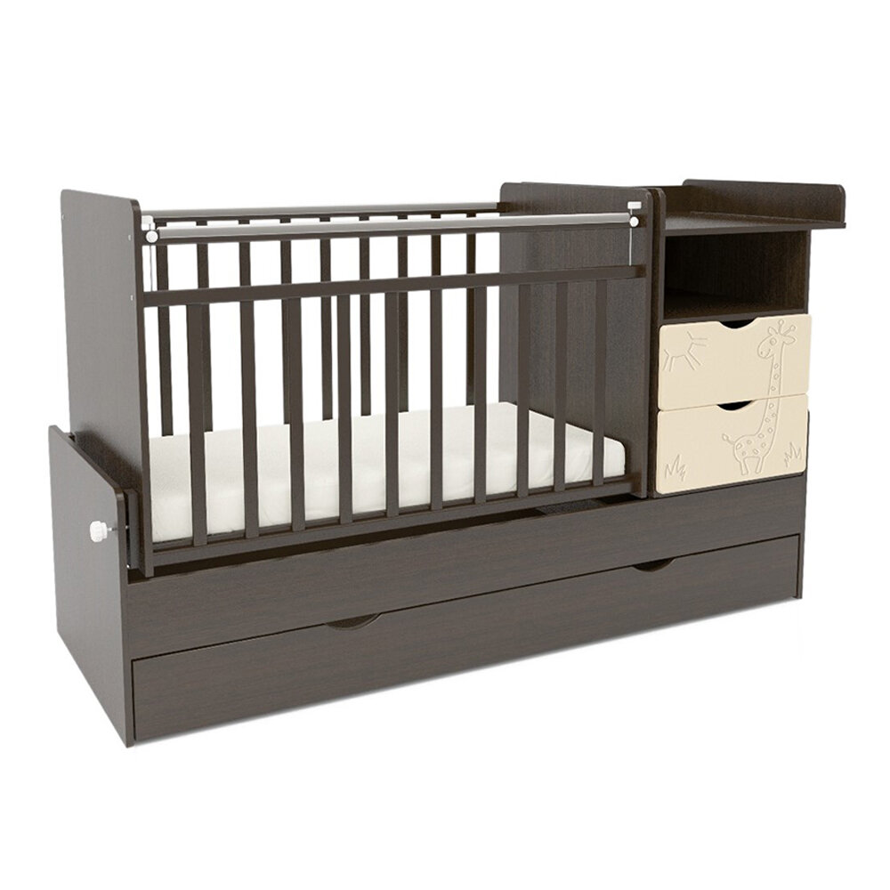 Кровать детская СКВ-5 Жираф (опуск.бок., маятник, полка, 3 ящика, венге+бежевый) SKV 5433947