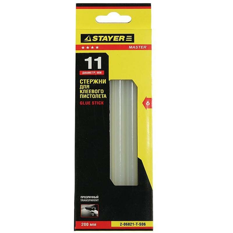 Stayer Пистолеты Скотчи, пленки "MASTER" Стержни для клеевых термоклеящих пистолетов, прозрачные по стеклу и пластику, 11х200мм, 6шт 2-06821-T-S06