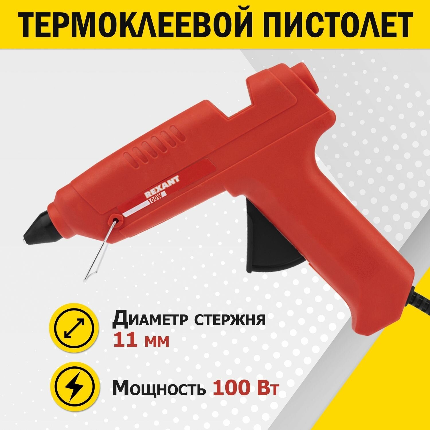 Клеевой пистолет Rexant, 100Вт, для стержня 11мм (12-0105)