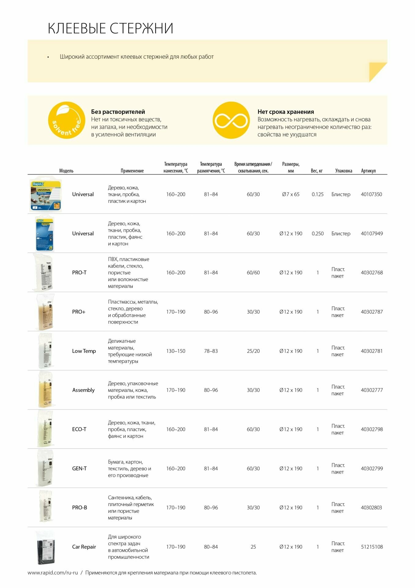 СохранитьRapid Клеевые стержни PRO+, 12х190 мм,1кг, прозрачный желтый, время фиксации 30 с, для клеевого пистолета интересное: