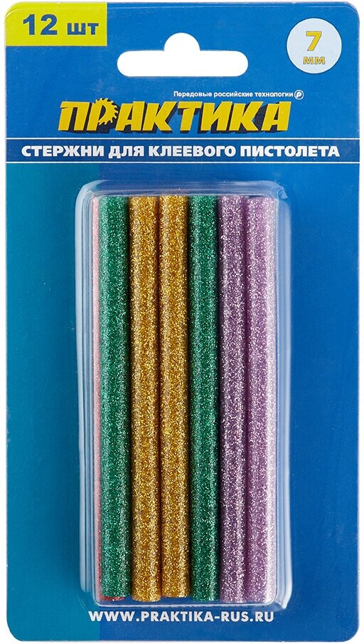 Клей ПРАКТИКА 649-349 7х100мм 12шт для клеевого пистолета металлик 6 цветов