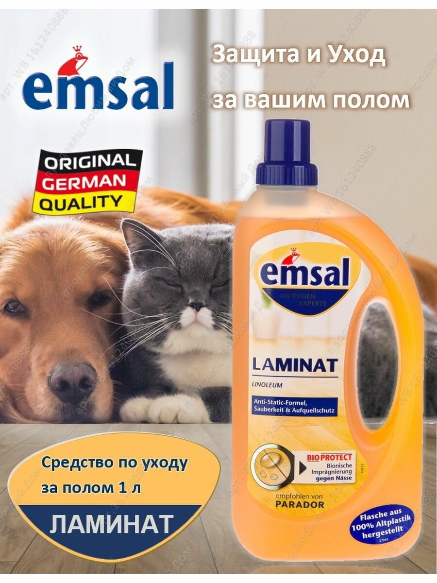 Средство мытья пола Emsal "Ламинат", для ухода за ламинированным полом, 1 л (706388)