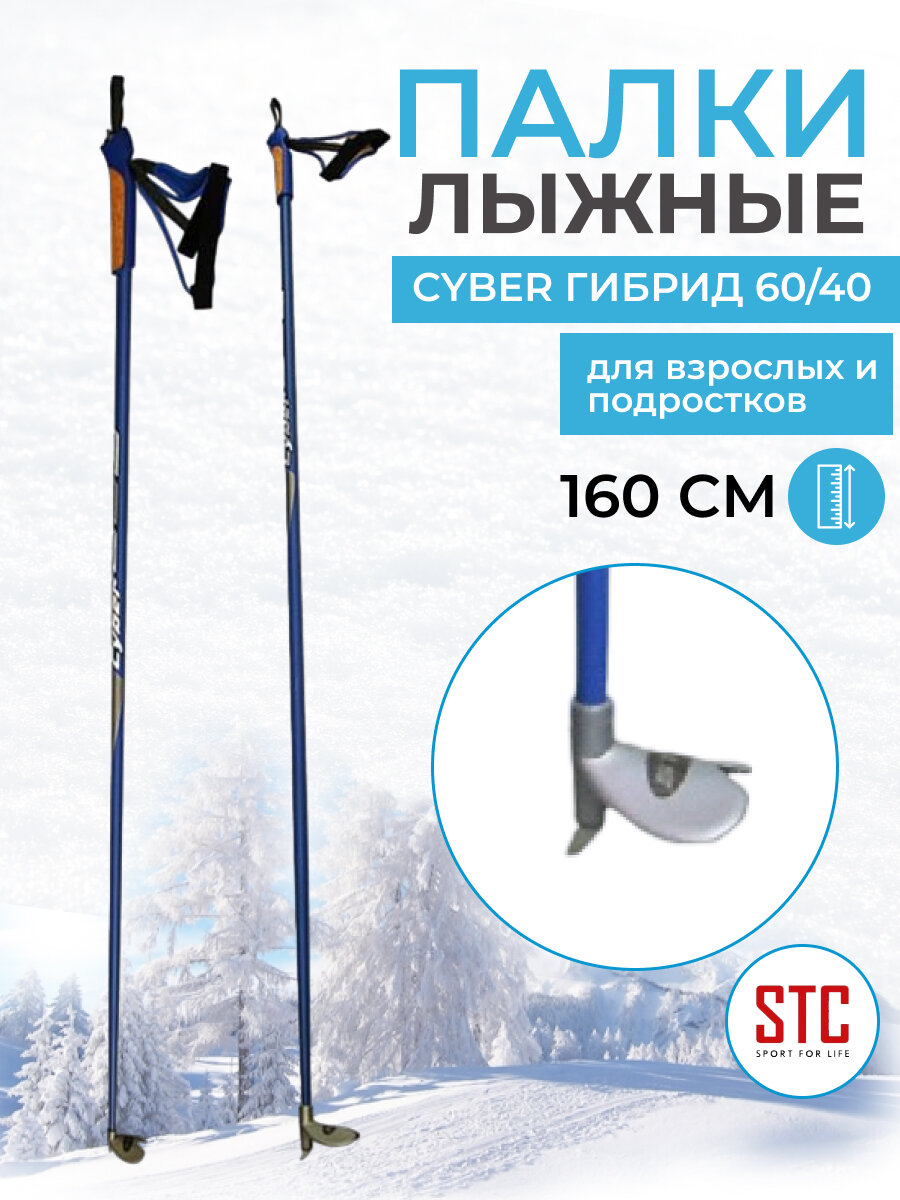Палки лыжные Stc Cyber деколь гибрид 60/40, 160 см, синий