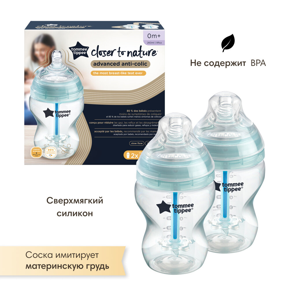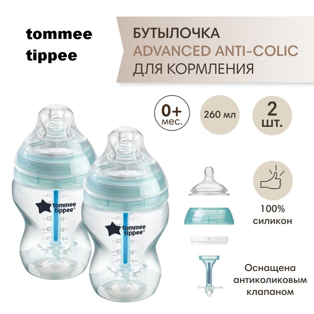 Бутылочка для кормления Tommee Tippee, Advanced Anti-Colic 260 мл, 2 шт 0+ интересное: