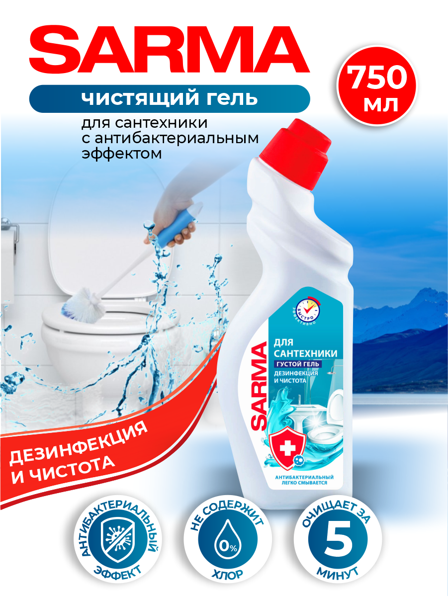 Купить Sarma Чистящее средство для сантехники Дезинфицирующий гель, 750мл