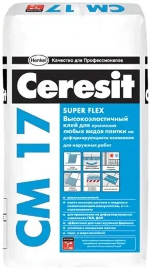 CERESIT CM 17 SUPER FLEX клей суперэластичный с микроволокнами для всех видов плиток (25кг)