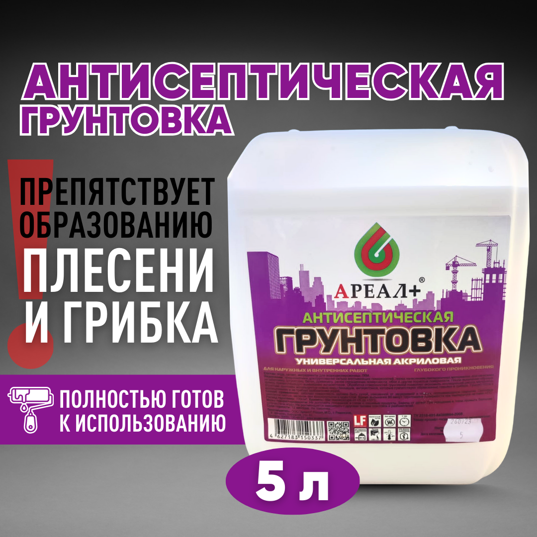 Грунтовка универсальная антисептическая Ареал+ 5 л интересное: