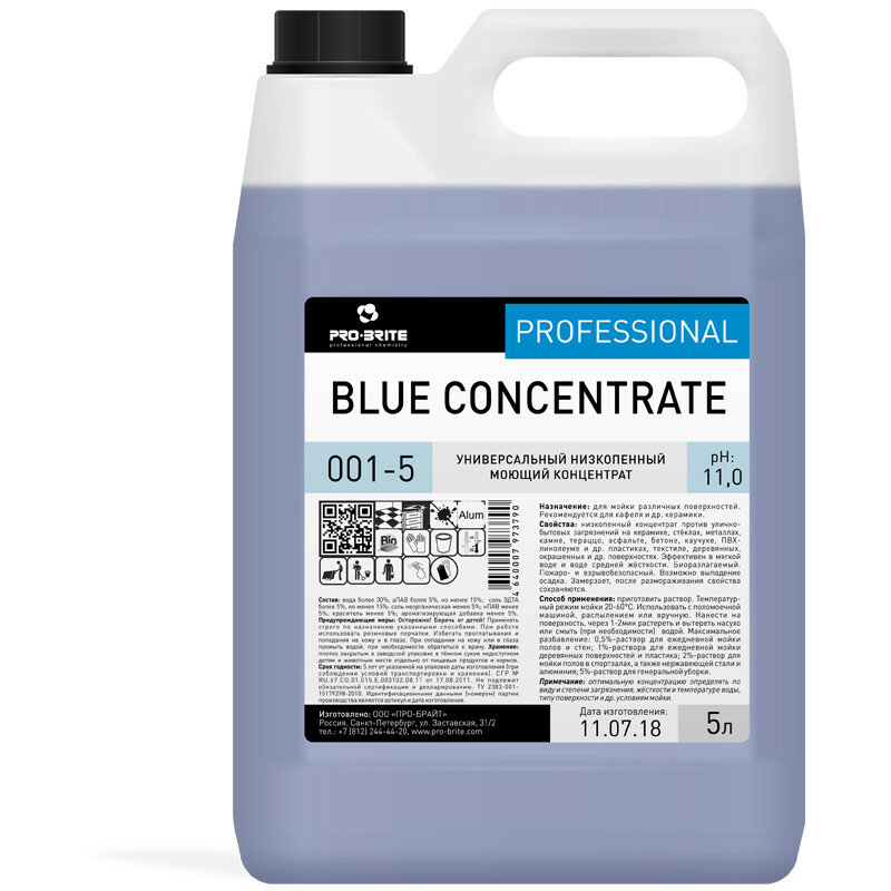 Универсальный низкопенный моющий концентрат 001-5 Blue Concentrate 5л Pro-Brite