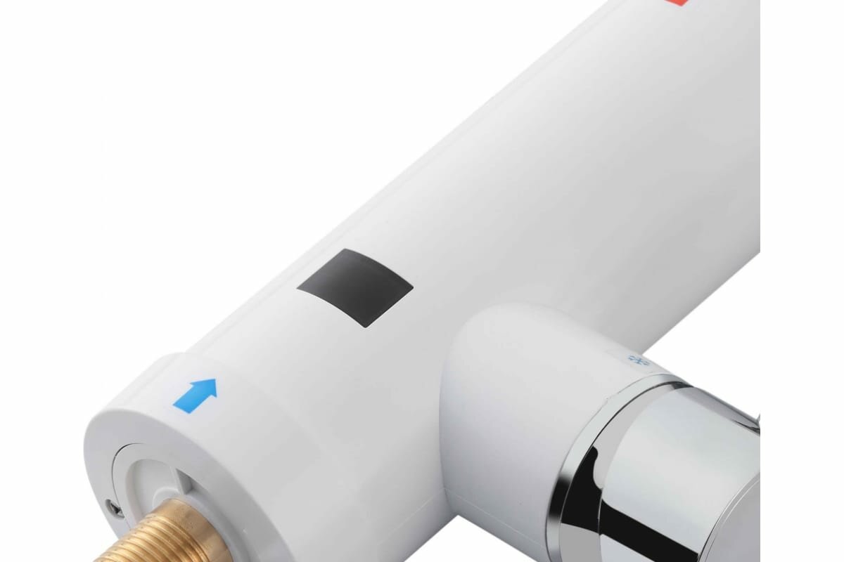 | Плюсы: | Недорогой, легкий в установке. Нагревает воду мгновенно. |