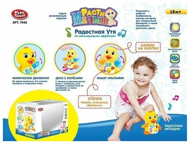 Play Smart Игрушка на батарейках 7446 Радостная Утя подсветка, звук в коробке .