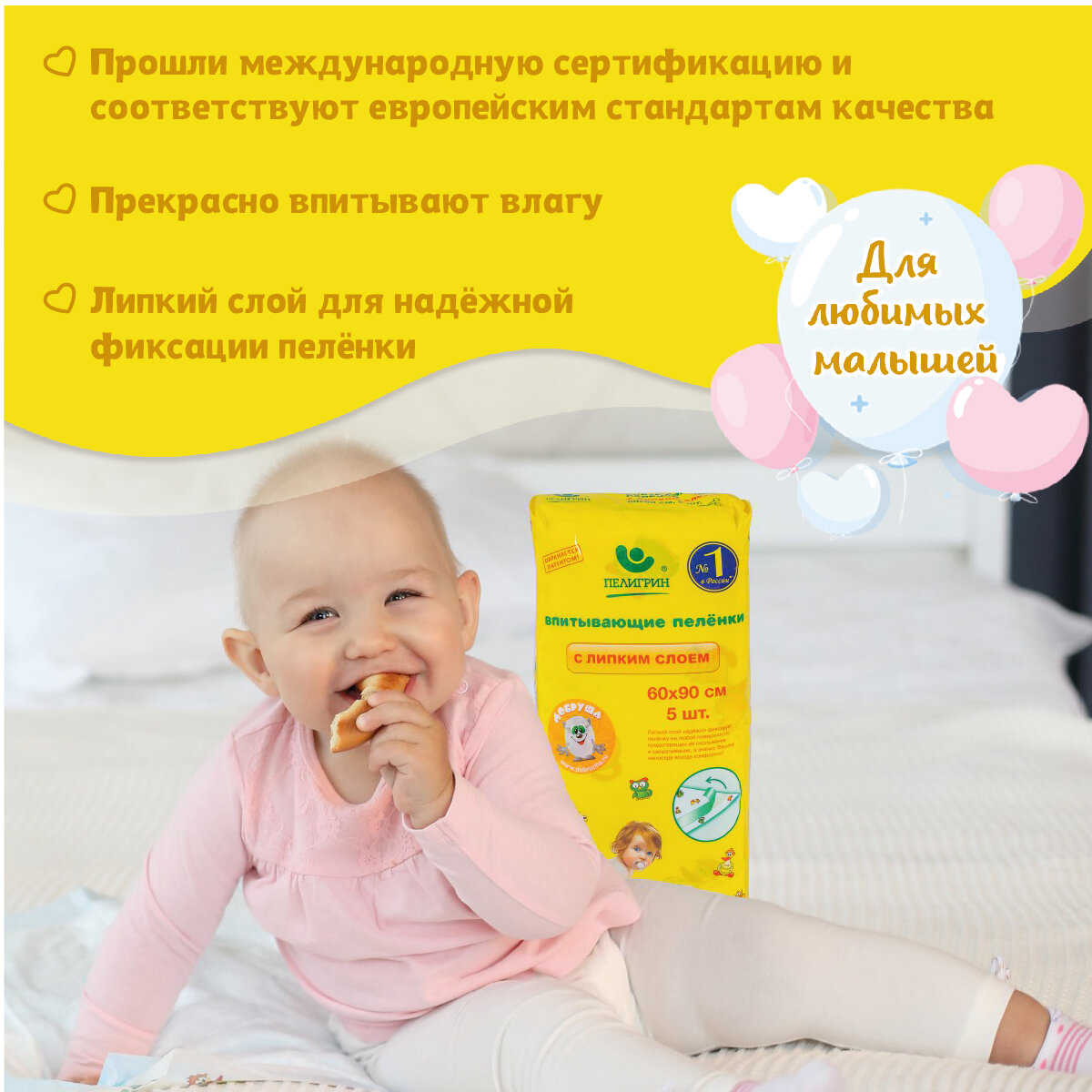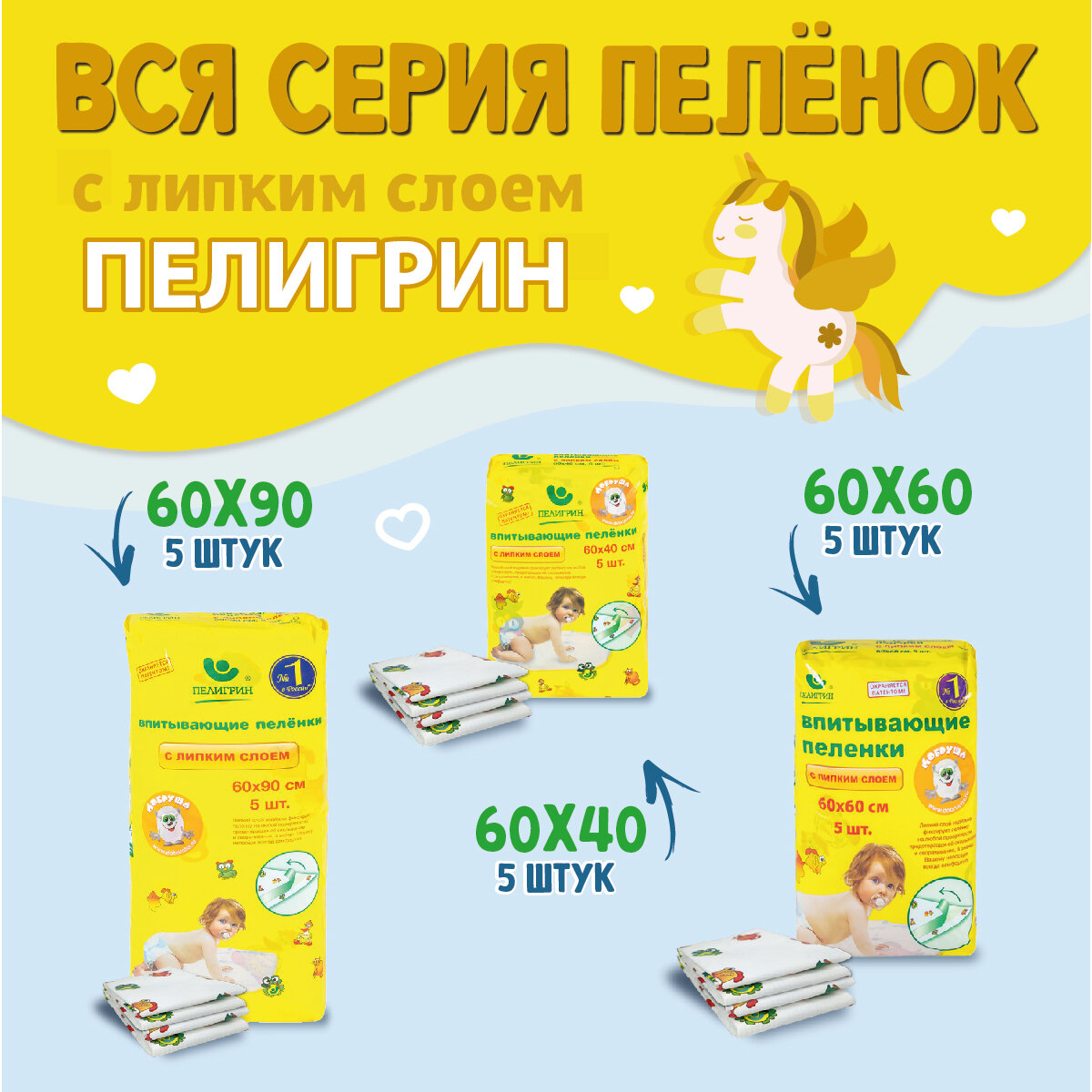Пеленки "Пелигрин" с липким слоем 60х90, 5 шт