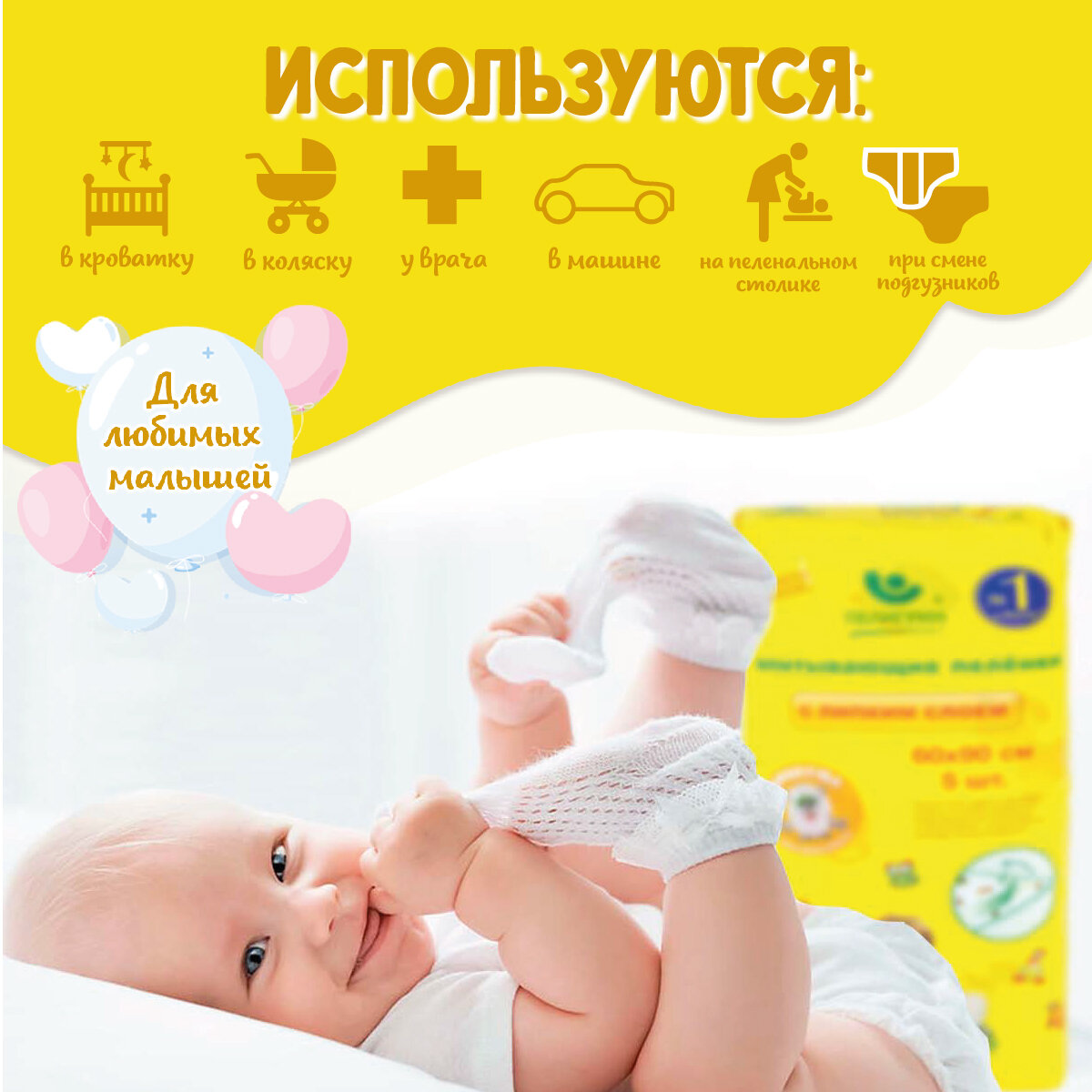Одноразовые пеленки Пелигрин с липким фиксирующим слоем 60х90см. 5 шт.