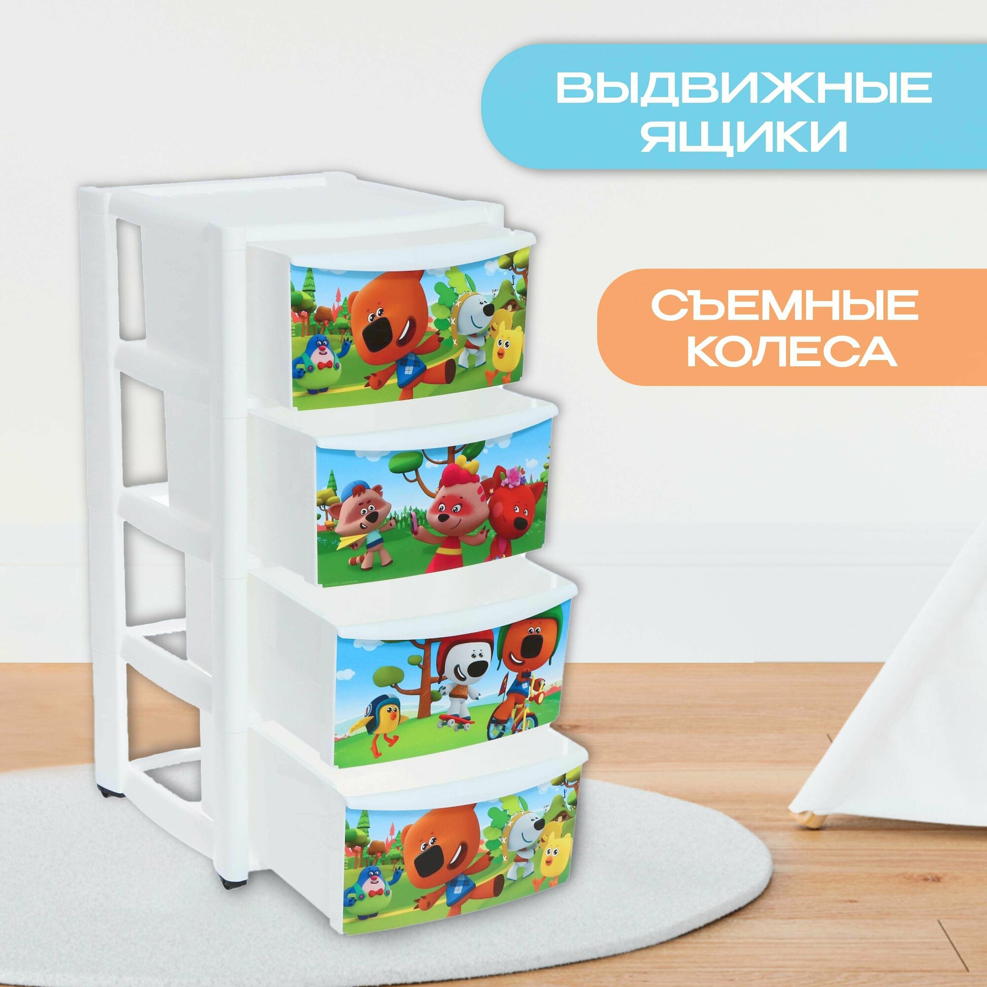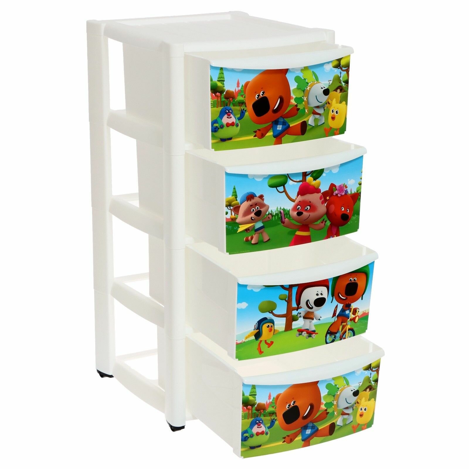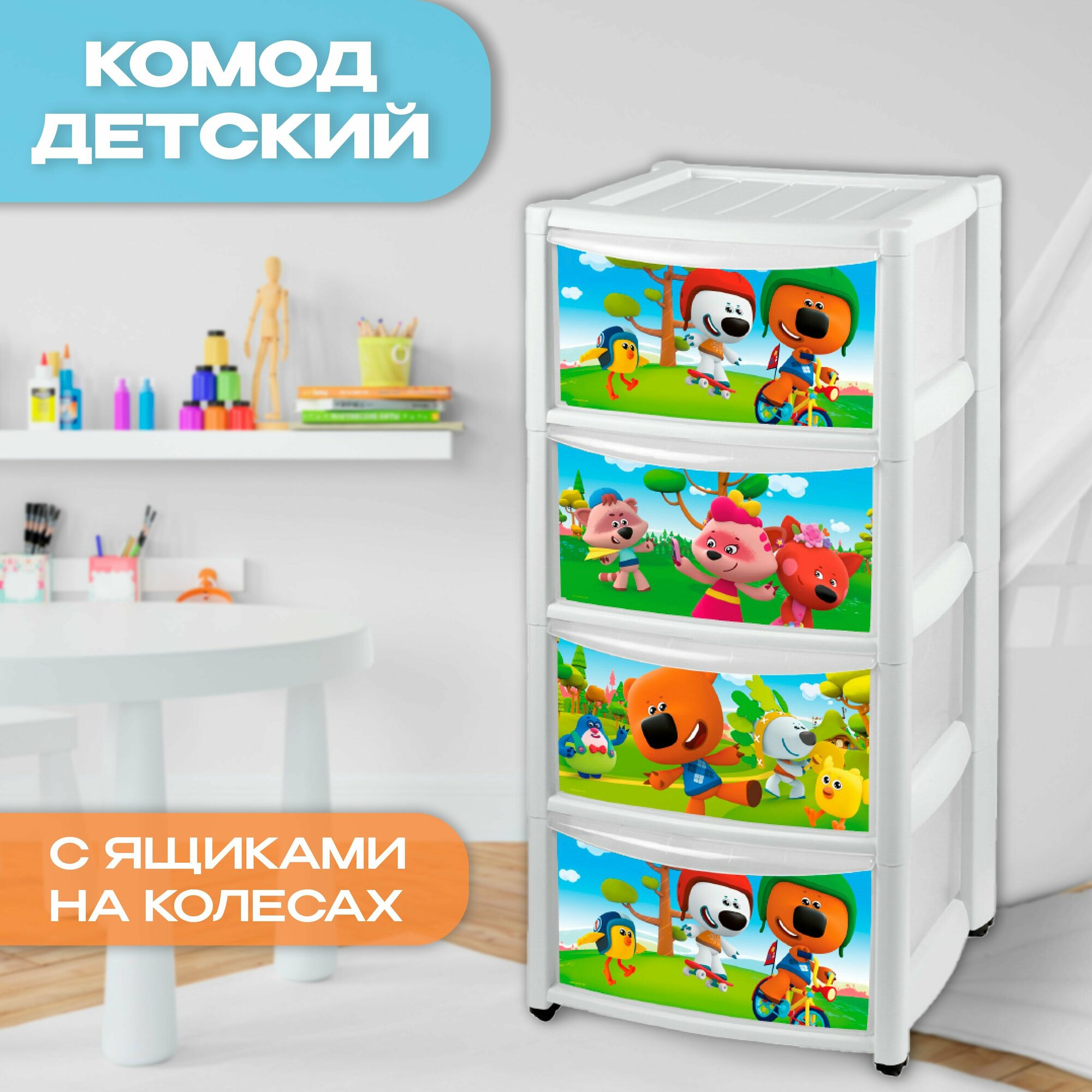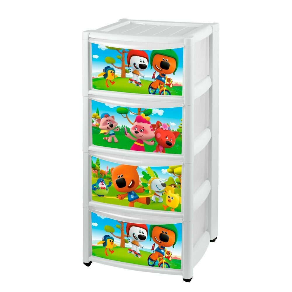 Пластишка Комод детский на колесах 4 ящика, цвет бежевый, рисунки микс