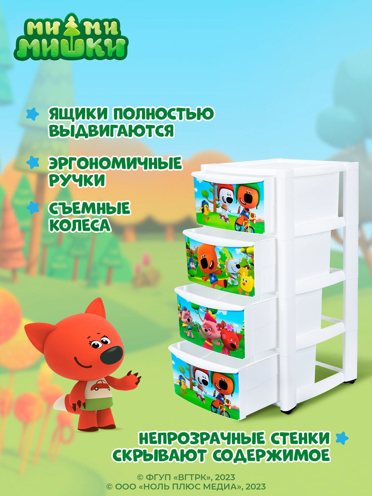 Комод детский на колесах с декором "МИ-МИ-МИШКИ" 4 ящика