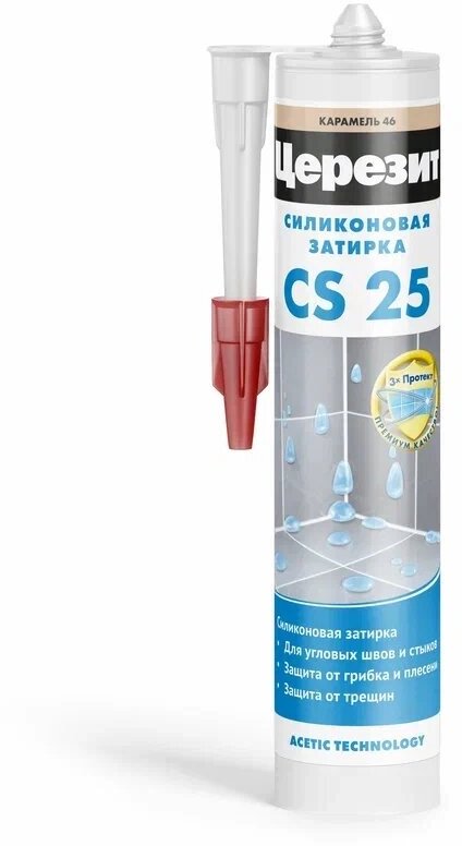 Силиконовая затирка-герметик Церезит CS 25, цвет №46 Карамель, 280 мл