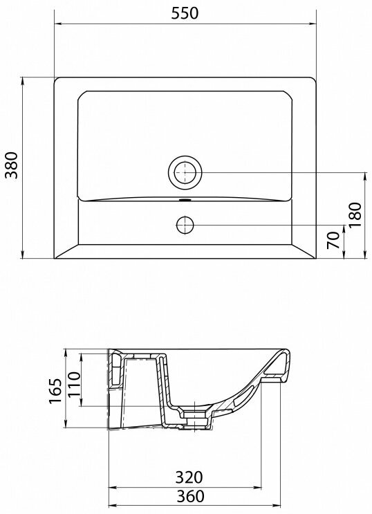 | Расположение отверстия под смеситель | в центре |