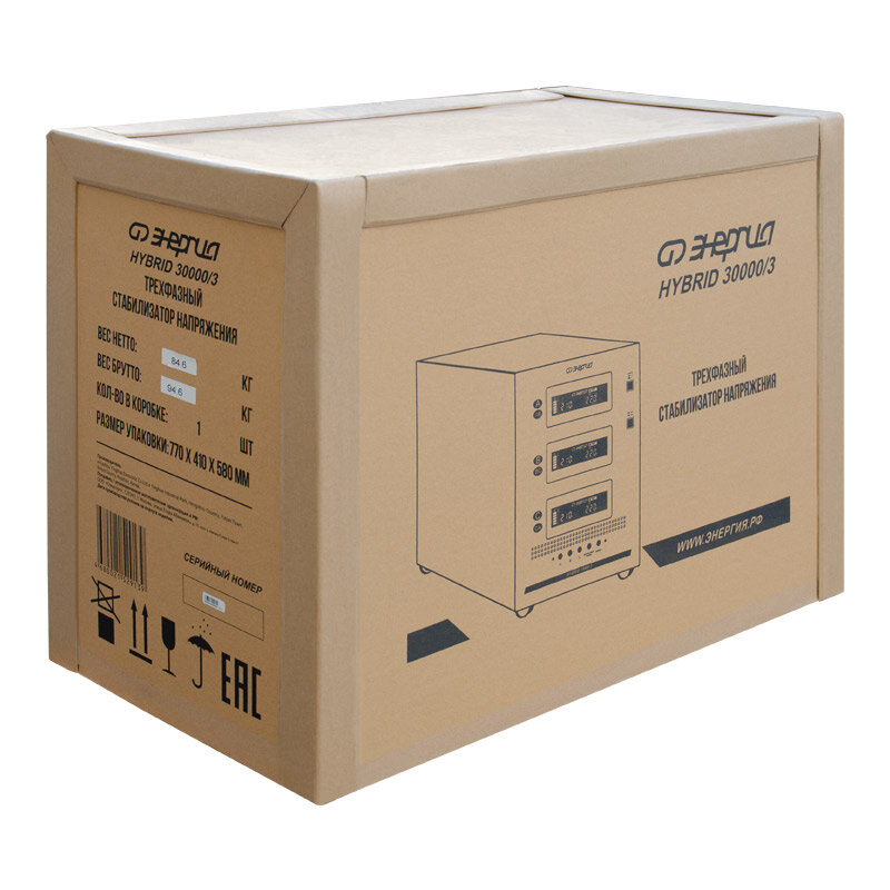 Купить Стабилизатор напряжения трехфазный Энергия Hybrid 30000/3 II черный 30000 ВА 21000 Вт 350 мм 700 мм 500 мм 85 кг