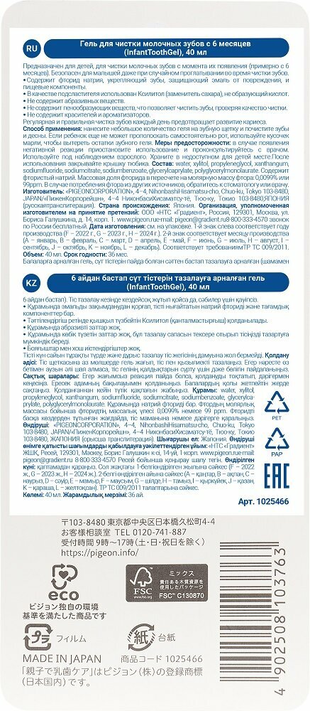 PIGEON Гель для чистки молочных зубов 6 мес. 40мл интересное: