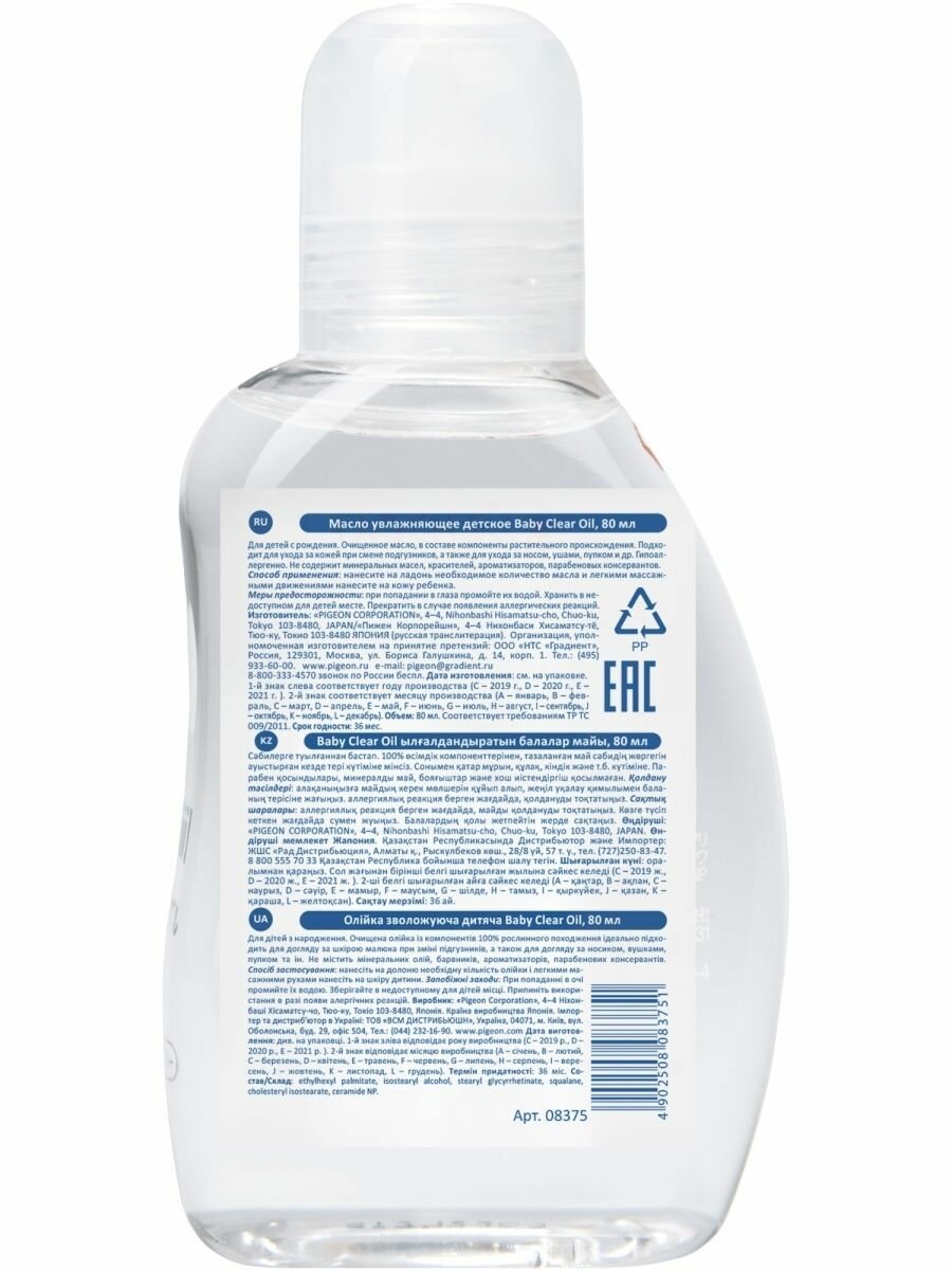 Масло увлажняющее детское Pigeon Baby Clear Oil 80 мл интересное: