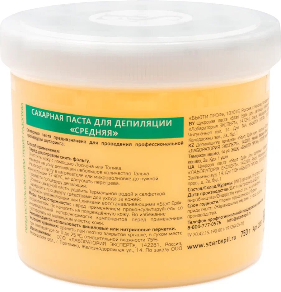 "Start Epil" Сахарная паста для депиляции "Средняя", 750 гр