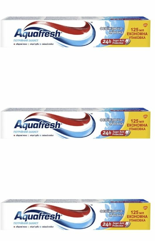 Aquafresh зубная паста "Освежающе-мятная", 125 мл., 3 шт.