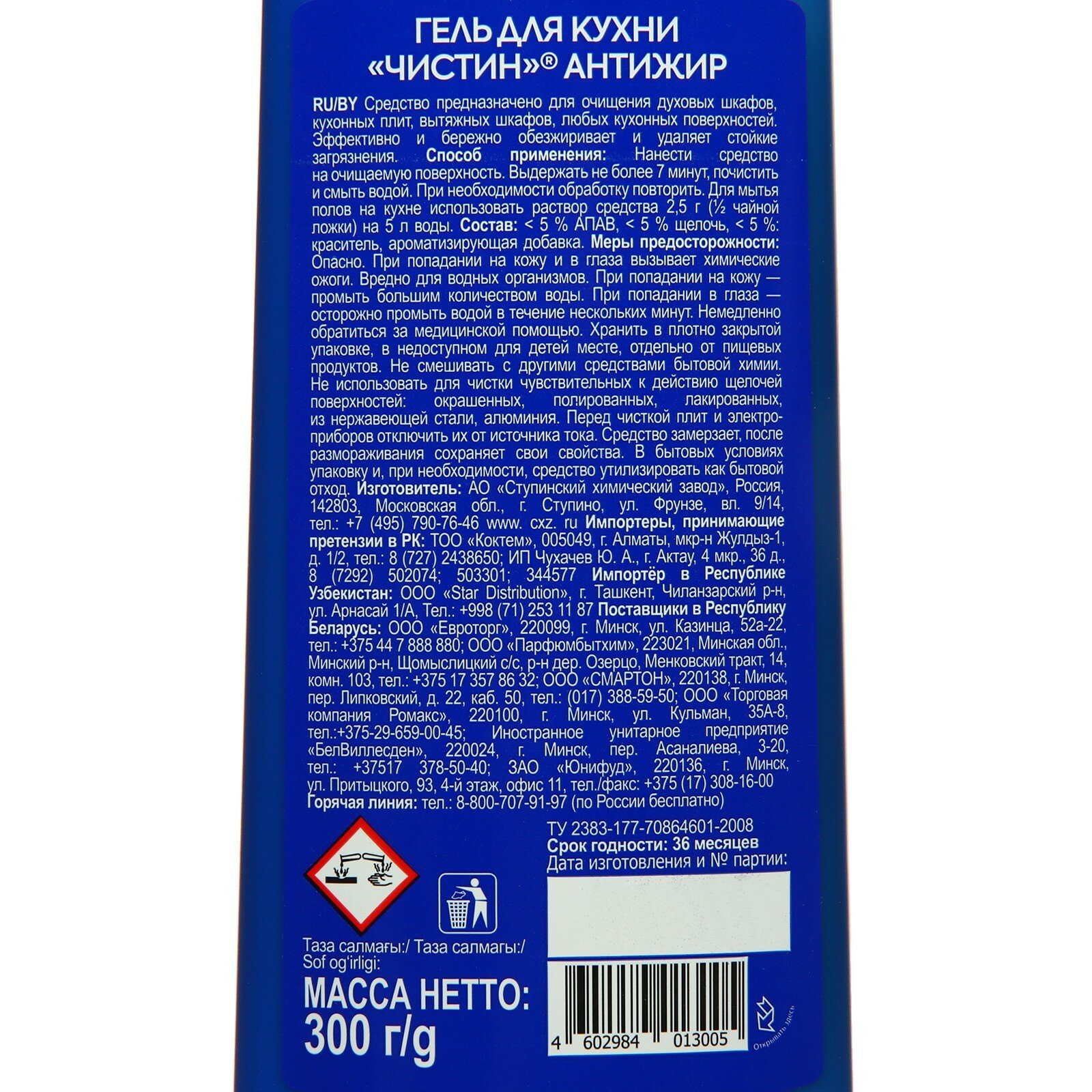 Ступинский химический завод (СХЗ) 3550 Гель для кухни "Чистин" Антижир, 300г