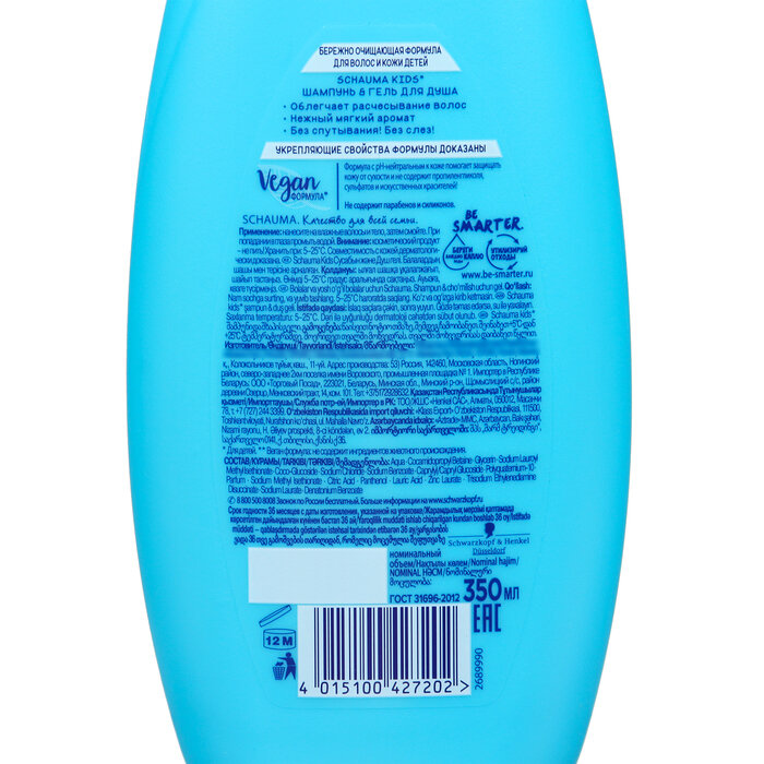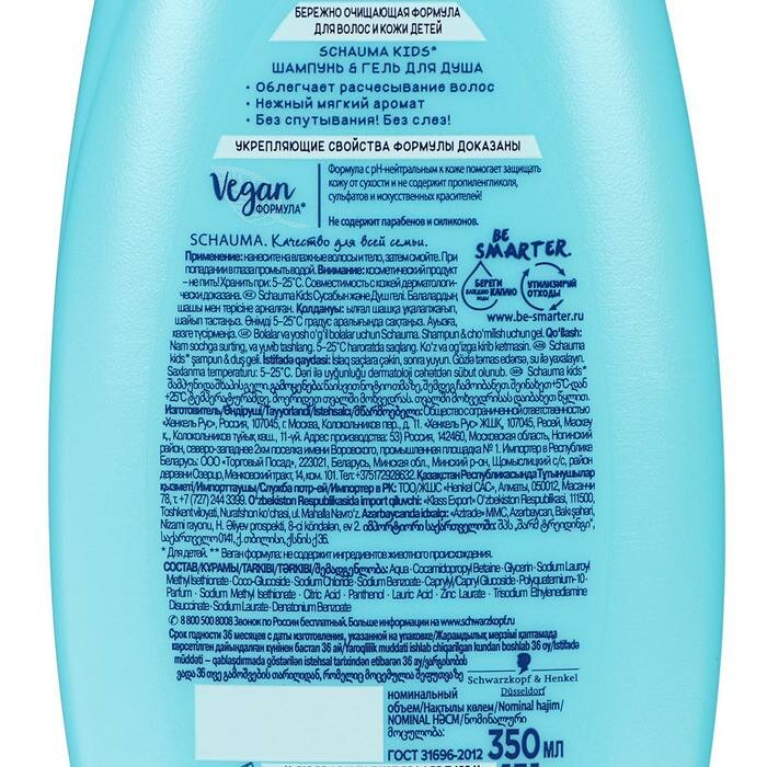 Schauma Шампунь детский Kids нежный и бережный уход, специально для волос и тела детей, 350 мл