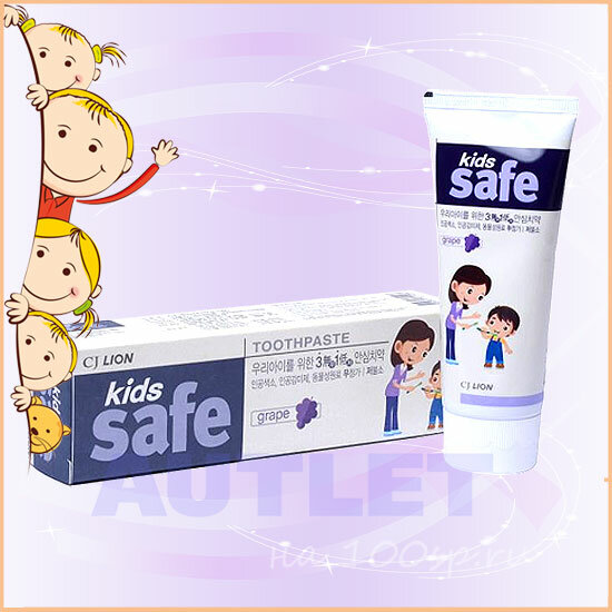 CJ Lion Kids Safe Зубная паста детская от 3 - х до 12 - ти лет со вкусом Винограда - 90 г