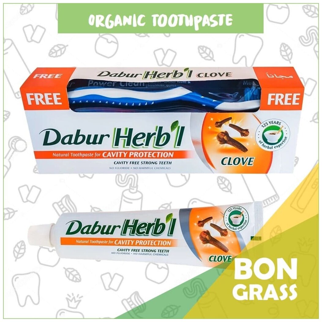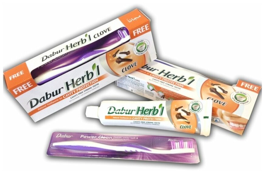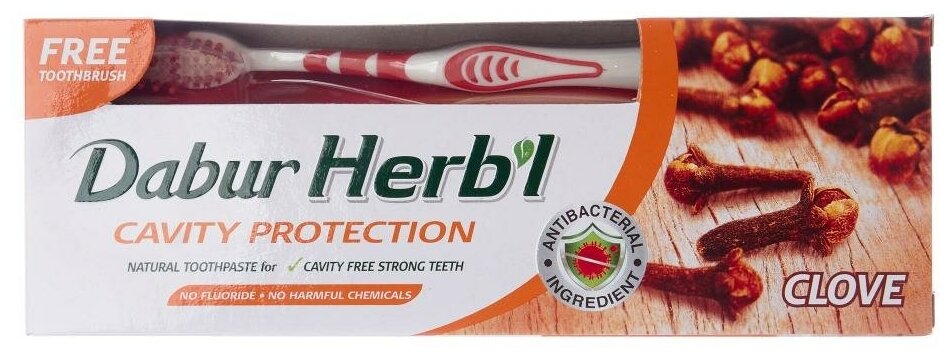 Dabur Herb'l зубная паста CLOVE (гвоздика)/Дабур Хербл Клов защита полости рта с гвоздикой (зубная щетка в подарок)), 150 г.