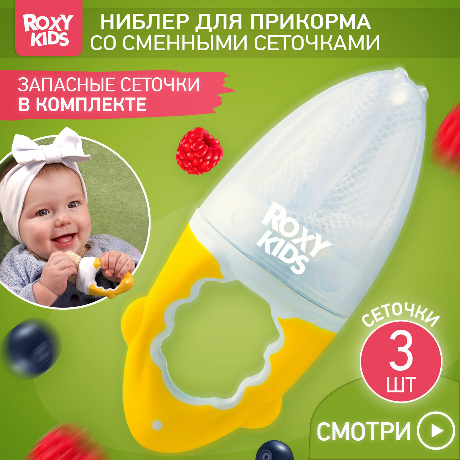 СохранитьНиблер для прикорма ROXY-KIDS детский с нейлоновой сеточкой цвет желтый интересное: