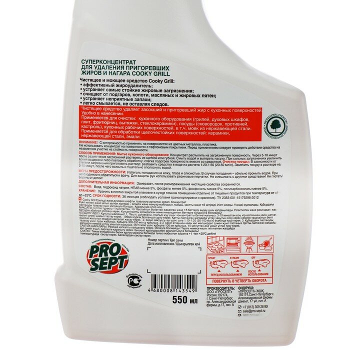 СохранитьСредство для очистки гриля и духовых шкафов Cooky Grill, концентрат, 550 мл, "PROSEPT" интересное: