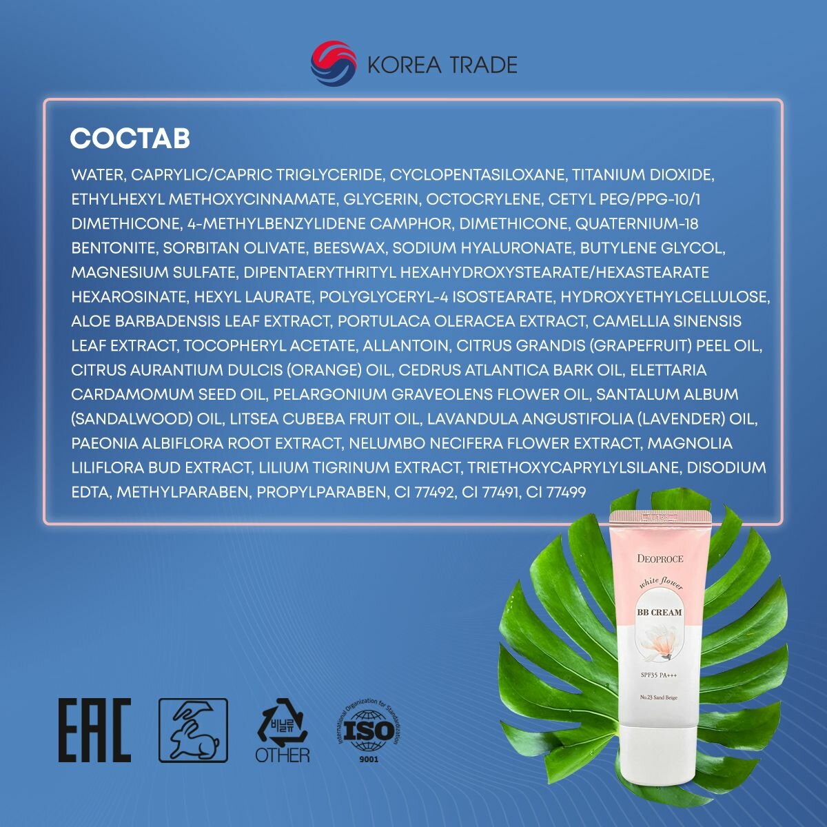 Купить Deoproce White Flower Bb Cream SPF35 PA+++ #23 Солнцезащитный ББ-крем с экстрактами белых цветов 30г