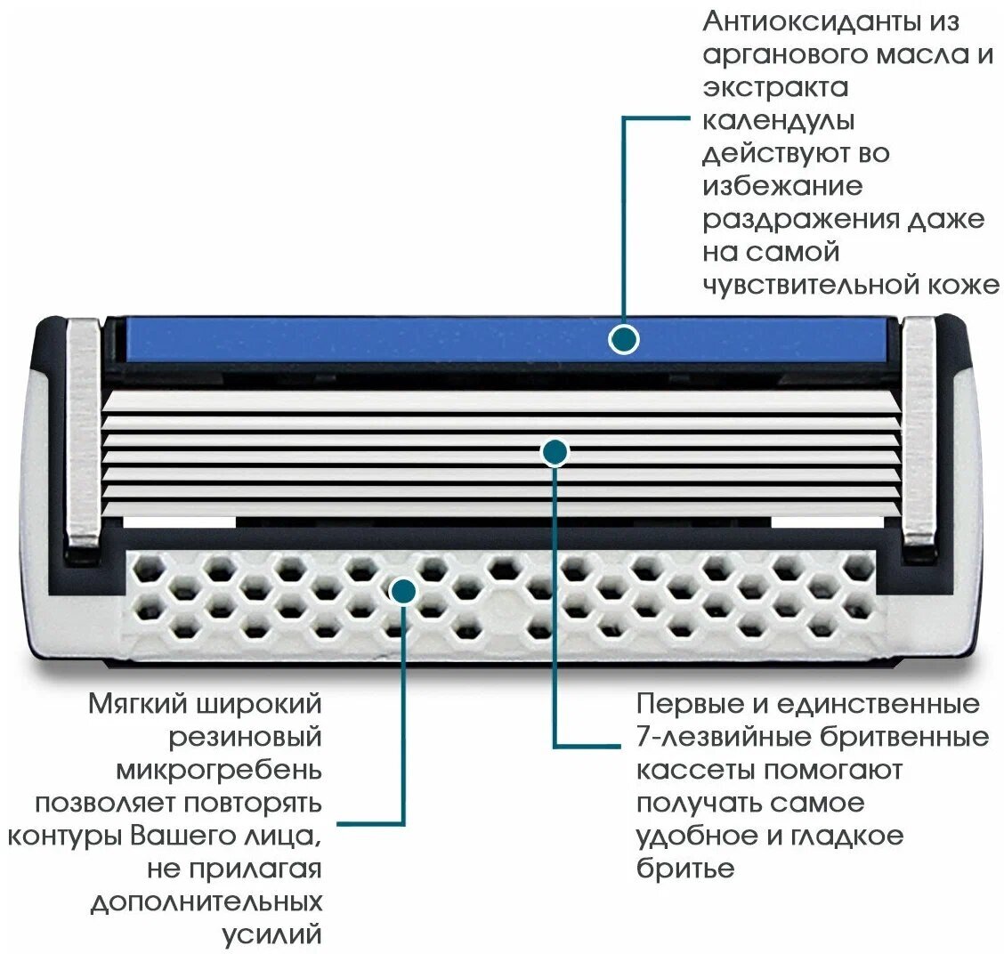| Минусы: | Увлажняющая гелевая полоска, толку от нее мало именно на картриджах с 7 лезвиями. С другими картриджами пока не пробовал. В магазинах мало где есть. |
