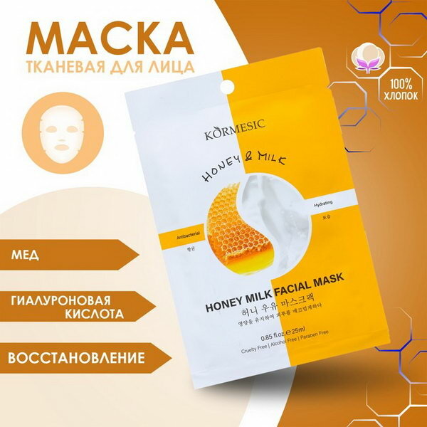 Маска тканевая увлажняющая для лица с молоком и мёдом(2 шт.) интересное: