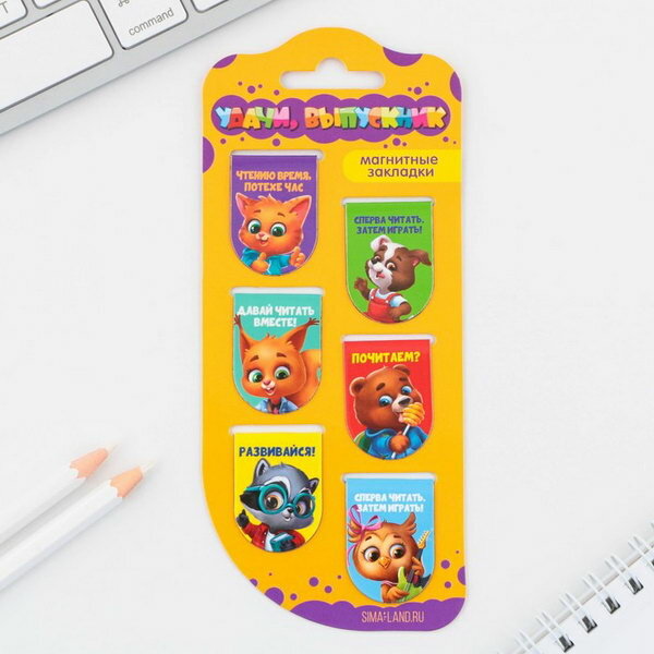 Закладки магнитные на подложке для книг «Удачи, выпускник», 6 штук . интересное: