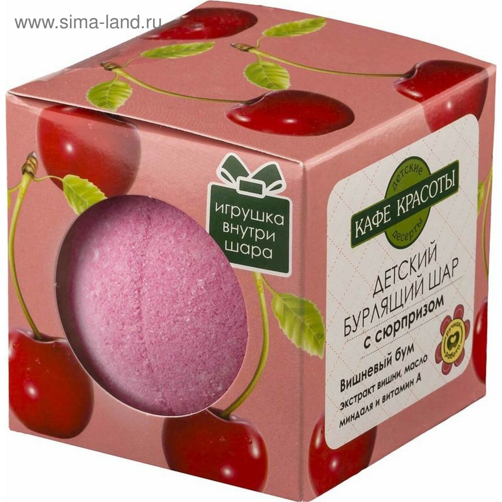 Купить Кафе красоты Шарик для ванны бурлящий с сюрпризом-игрушкой Вишневый бум, 120 мл, 120 г
