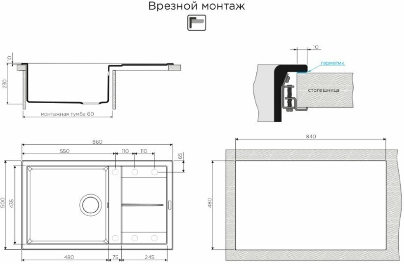 | Плюсы: | Сделано в Италии, толщина самой мойки, очень толстая стенка, отверстия снизу лучше коронкой сверлить. |