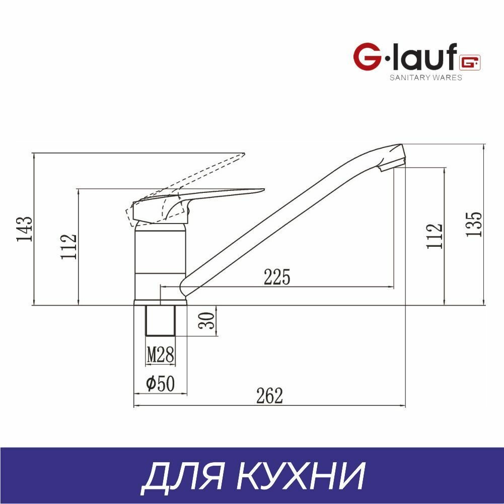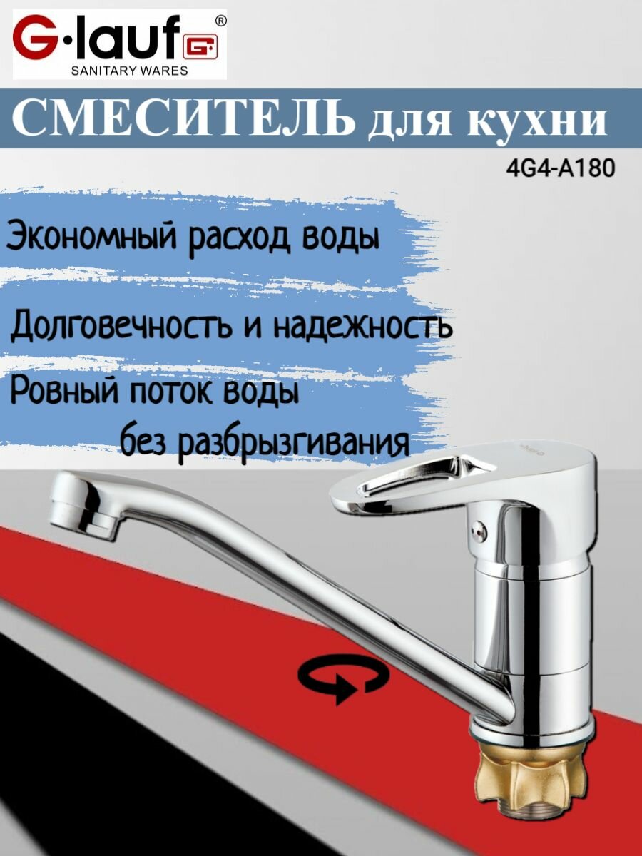 Смеситель для кухни 40к Glauf 4G4-A180 ЛАТ п/гайку