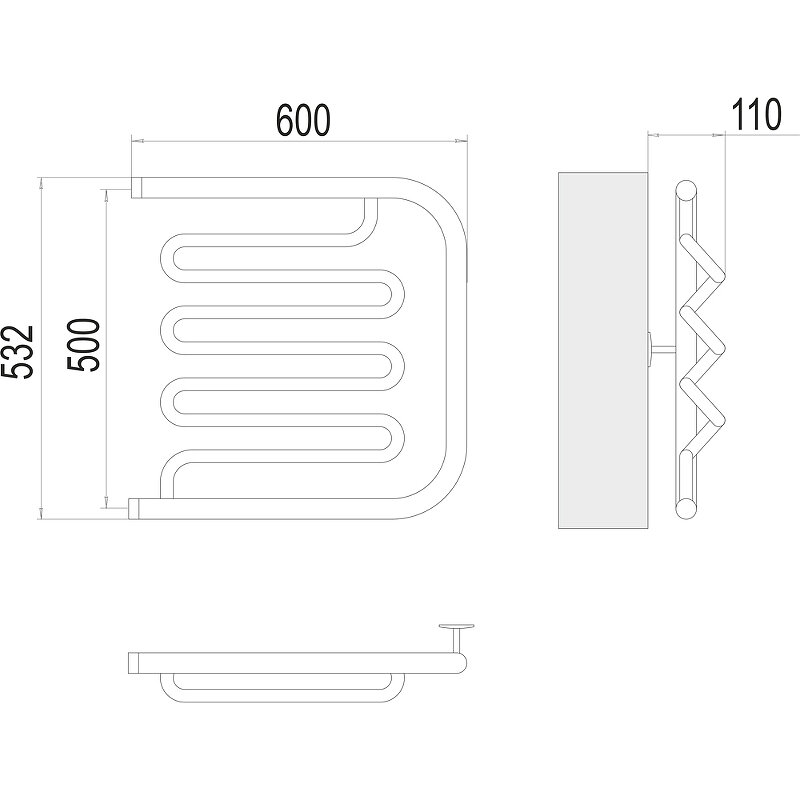Водяной полотенцесушитель TERMINUS Фокстрот-Лиана 600x532 хром