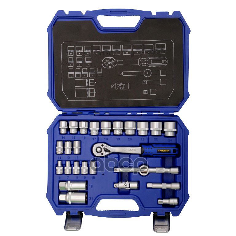 Набор инструмента 26предм. в пластиковом кейсе 3/8 Goodyear_