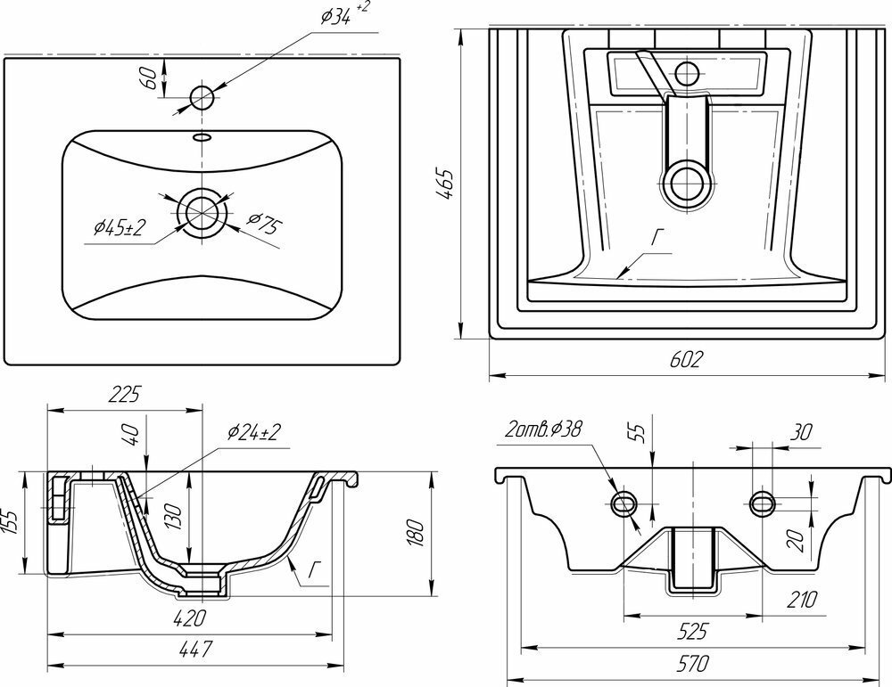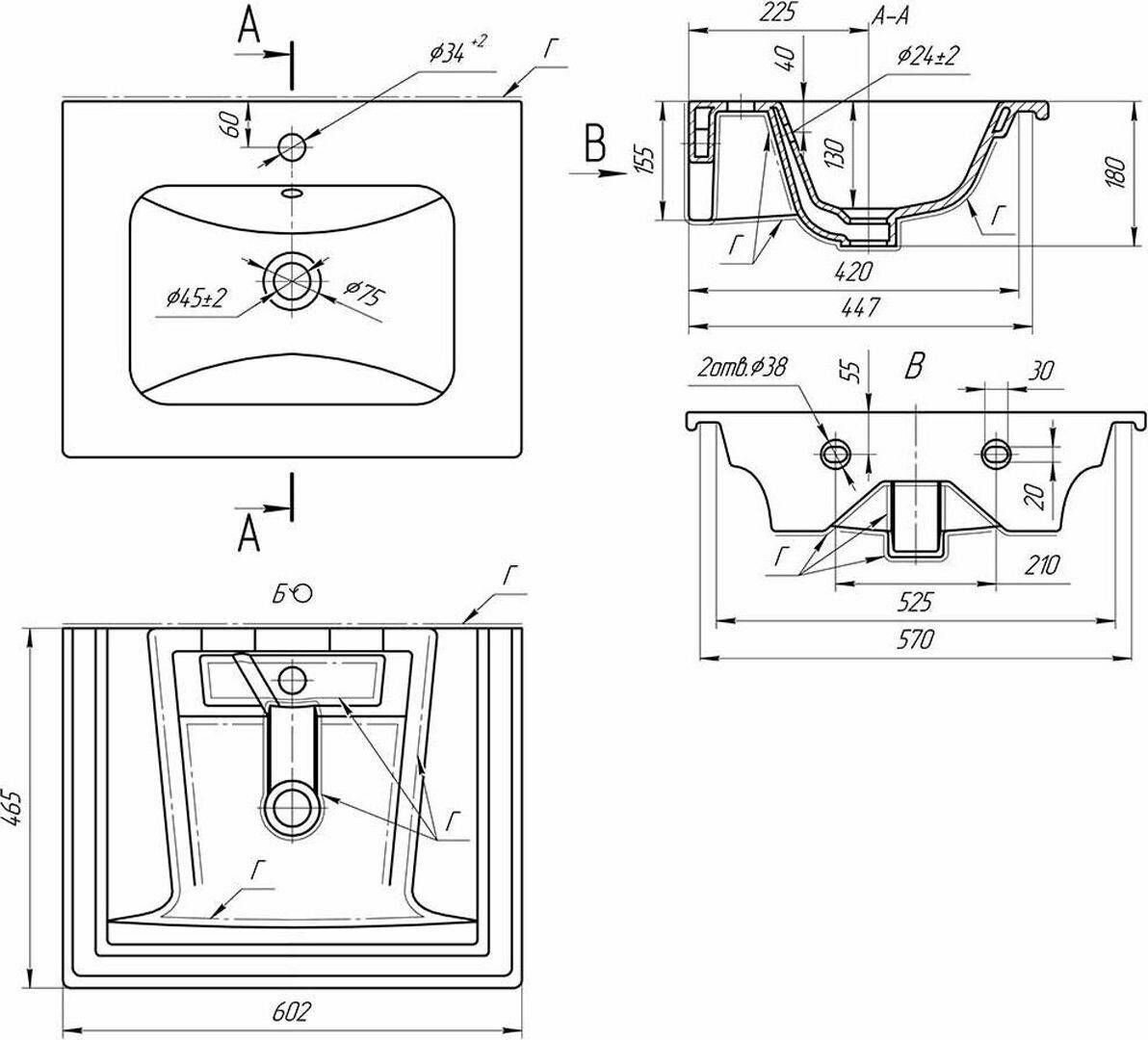 | Отверстие под перелив | есть |
