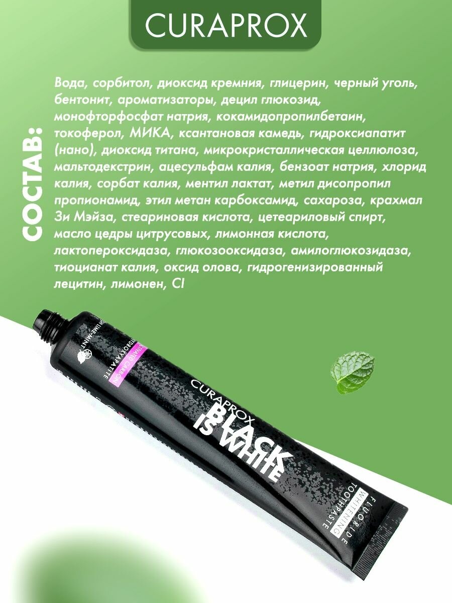 Зубная паста Curaprox Black Is White, лайм, 90 мл, 90 г
