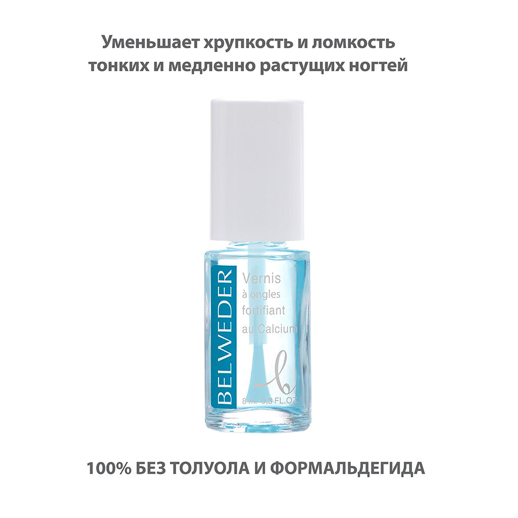 Лак для медленнорастущих и ломких ногтей BELWEDER с кальцием, 8 мл