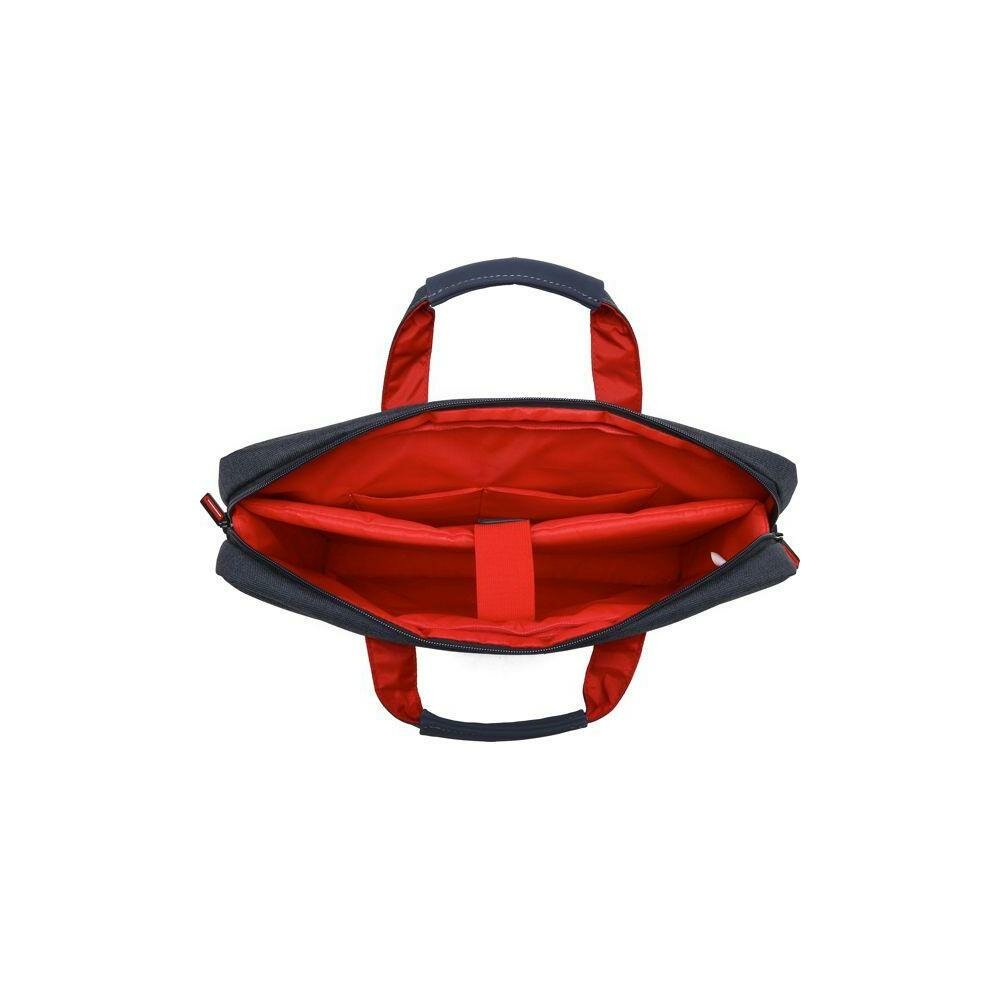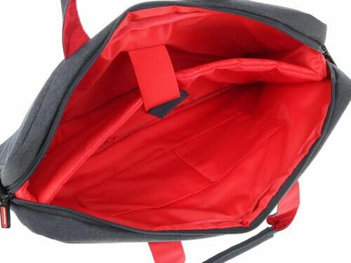 Мой ноутбук Dell G5 отлично помещается. Внутри сумки материал красного цвета, отлично подходит под мой красный ноутбук. :) |