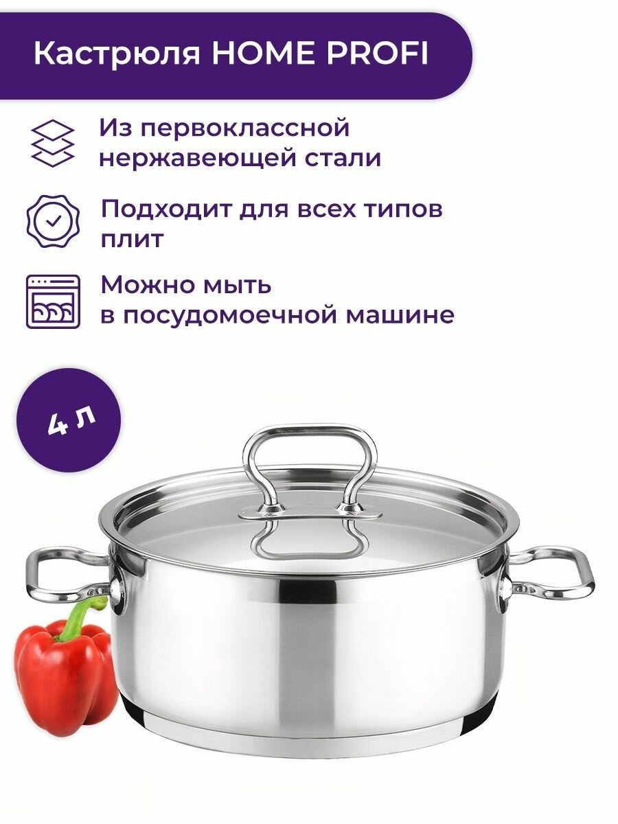 Кастрюля Tescoma HOME PROFI с крышкой 22 см 4.0 л (774222) интересное: