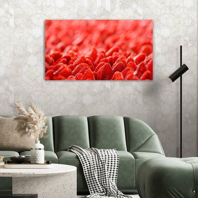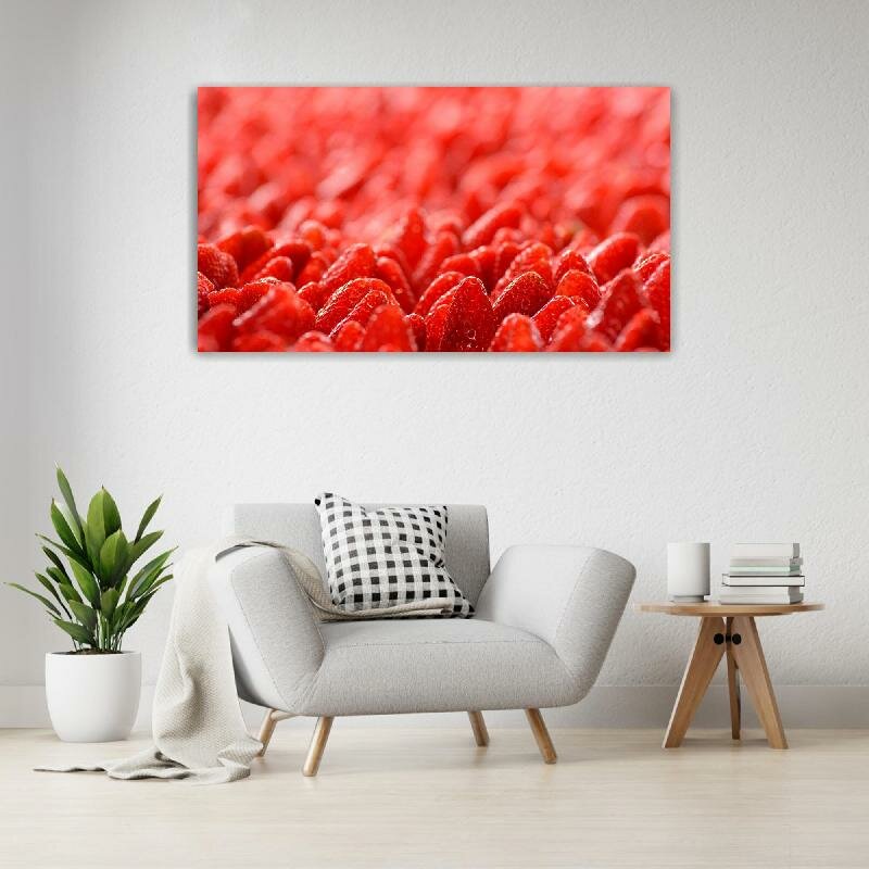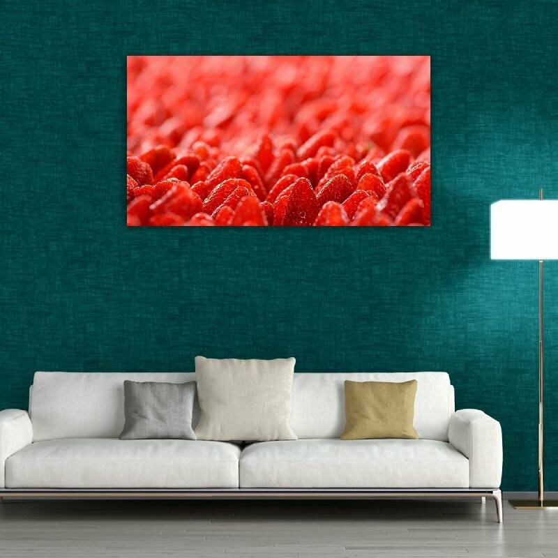 Купить Картина на холсте 60x110 LinxOne "Клубника макро ягоды" интерьерная для дома / на стену / на кухню / с подрамником